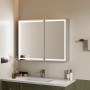 Equipped with a built-in rapid-heating demister pad, this anti-fog bathroom mirror cabinet ensures a perfectly clear reflection even in high-humidity environments after hot showers. The heating element is safely insulated and operates via an independent touch sensor switch to maximize energy efficiency when not in use. This specialized feature eliminates the need for manual wiping, preserving the lighted medicine cabinet with mirror's high-definition glass surface.